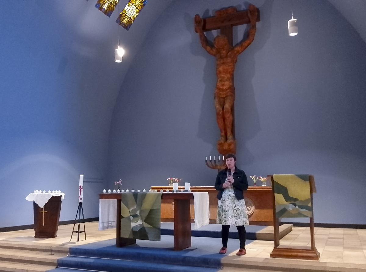 In der Lutherkirche fand die Ausstellungseröffnung im Beisein der Künstlerin Ulrike Basner statt. Die Veranstaltung begleitete Paul Beckert mit französischer Musik an der Orgel. Die 29-jährige Ausstellerin hat im Jahr 2023 den Diplomstudiengang der Textilen Künste beendet. Sie gab den Besucher*innen Einblick in ihre vielfältigen Wege des Zeichens. Basners Bilder lassen mit den vielen Farben und Formen eigenen Interpretationsspielraum zu und ermöglichen den Betrachter*innen auch, Neues zu erkennen. Tagsüber kann die Ausstellung in der geöffneten Lutherkirche besichtigt werden.