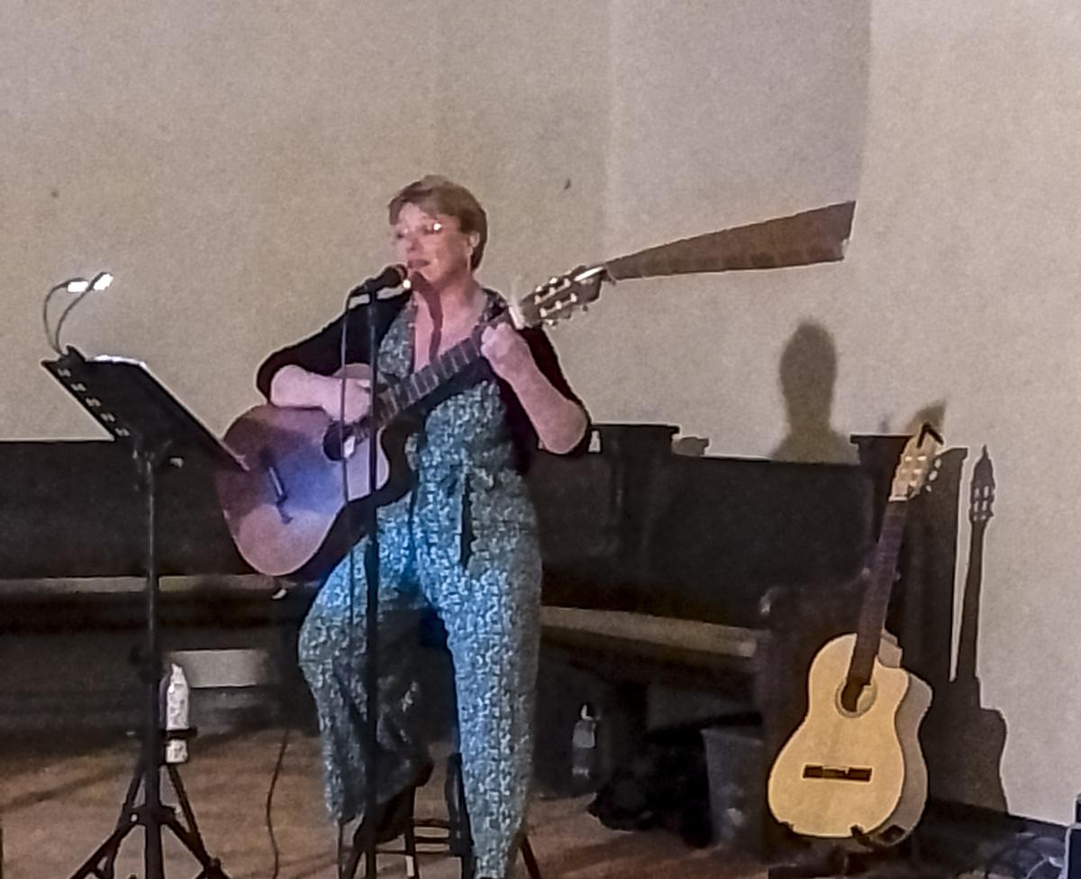 Cordula Naumann hatte als Liedermacherin aus Halle/Saale ihre "Lieder vom Liebe und Leben" im Gepäck und ließ in jeder Runde an diesem Abend zwei davon erklingen.