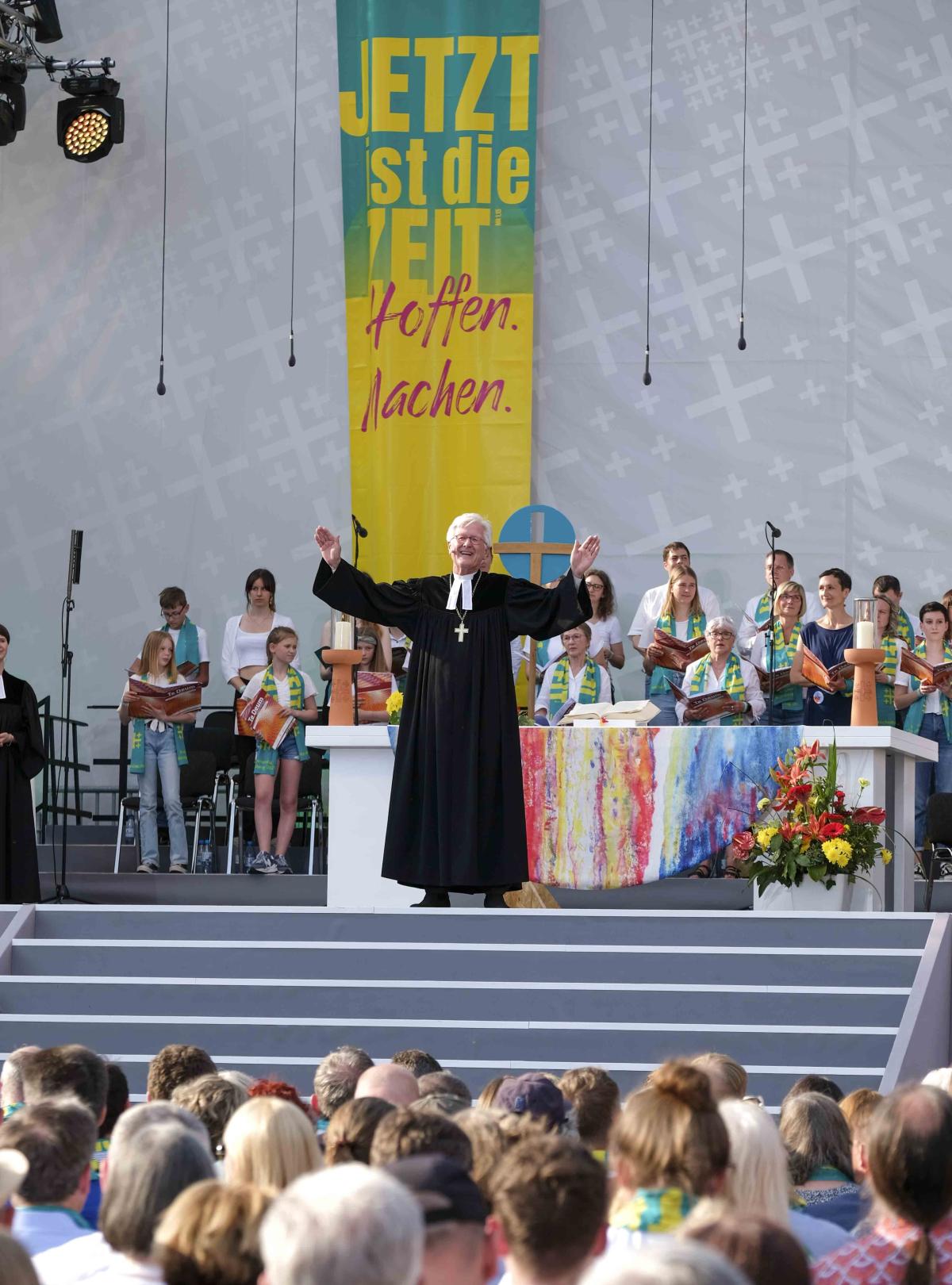 Die inhaltlich heiß diskutierte Predigt beim Abschlussgottesdienst hielt der aus Südafrika stammende Pastor Quinton Ceasar aus Wiesmoor (Niedersachsen). Vor rund 18.000 Menschen klagte Ceasar Rassismus und Ausgrenzung an - auch in der Kirche selbst: „Doch wenn ihr von der Liebe predigt, die alles besiegt, und trotzdem meine Geschwister und mich diskriminiert – wegen unseres Einkommens, unserer Hautfarbe, unserer Behinderung oder unserer queeren Identität - dann sagen wir: Moetie liegie daai kind! Meine Geschwister und ich – wir sind Kirche. Wir sind kein Gegenüber, brauchen keine Nächstenliebe oder Zuwendung von oben herab. Wir sind Kirche.“