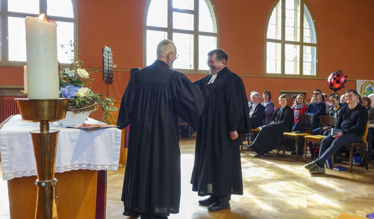 Wenn Fahrradständer keinen Platz mehr bieten, Autofahrer erfolglos nach Parklücken suchen und im geschmückten Gemeindesaal eilig Restbestände an Papphockern herbeigeholt werden, dann ist das ein deutliches Zeichen, dass etwas Besonderes ansteht. So auch in der halleschen Johannesgemeinde am zurückliegenden Passions-Sonntag namens Judika („Richte!“). Nach etwas mehr als zehn Jahren Dienstzeit wurde Pfarrer Karsten Müller aus der Gemeinde verabschiedet.