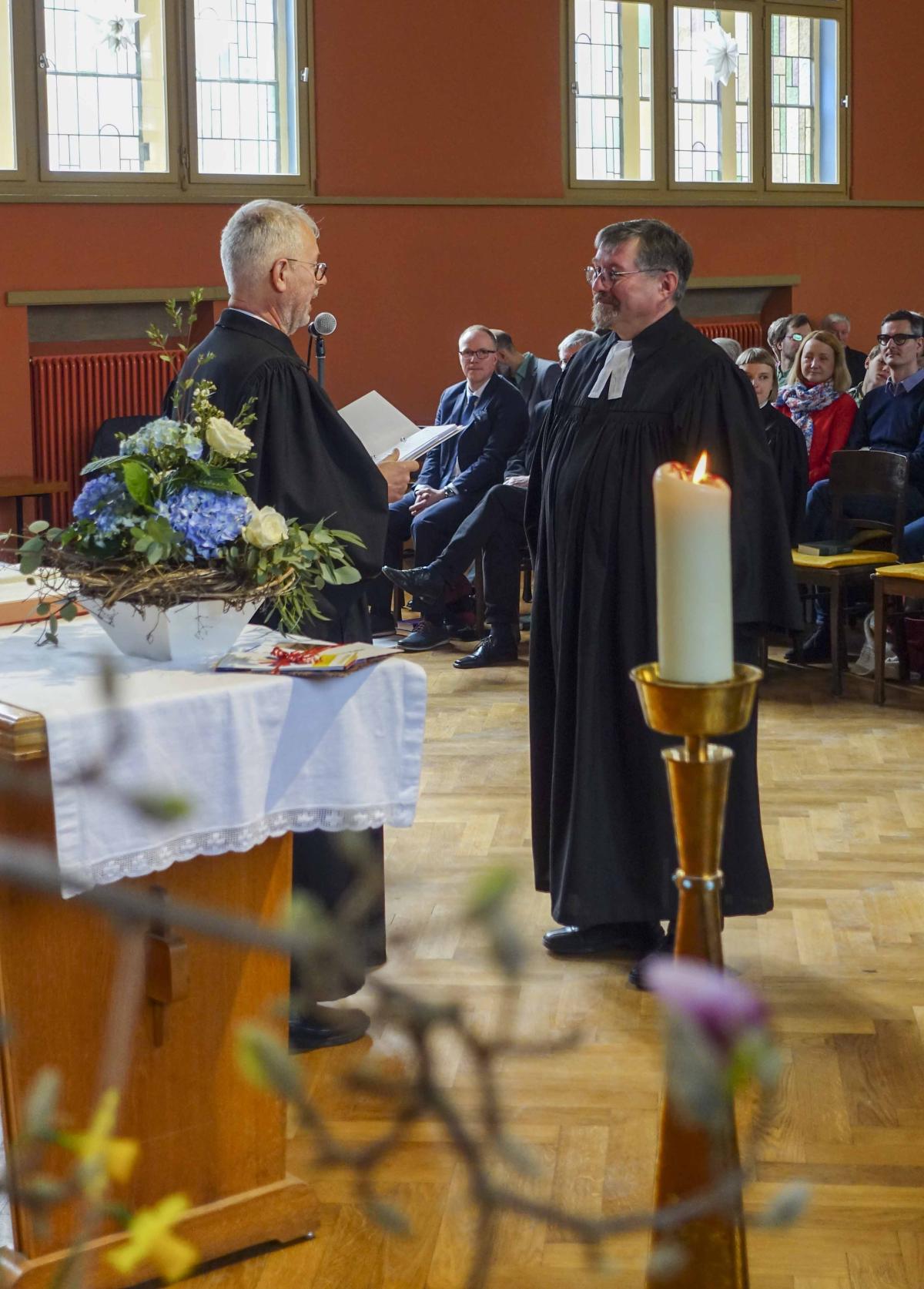 Parallel zu seiner Arbeit im Pfarrbereich engagierte sich der Seelsorger auch im Kirchenkreis. Als Synodaler, Mitglied im Kreiskirchenrat und – nicht zuletzt – in der Ausbildung und Begleitung ehrenamtlicher Lektorinnen und Lektoren war Müller aktiv. Zwei Vikarinnen gingen unter seiner Obhut die ersten Schritte ins Berufsleben als angehende Pfarrerinnen. Eine von ihnen, Hanna Henke, wurde gemeinsam mit ihm gestern verabschiedet.