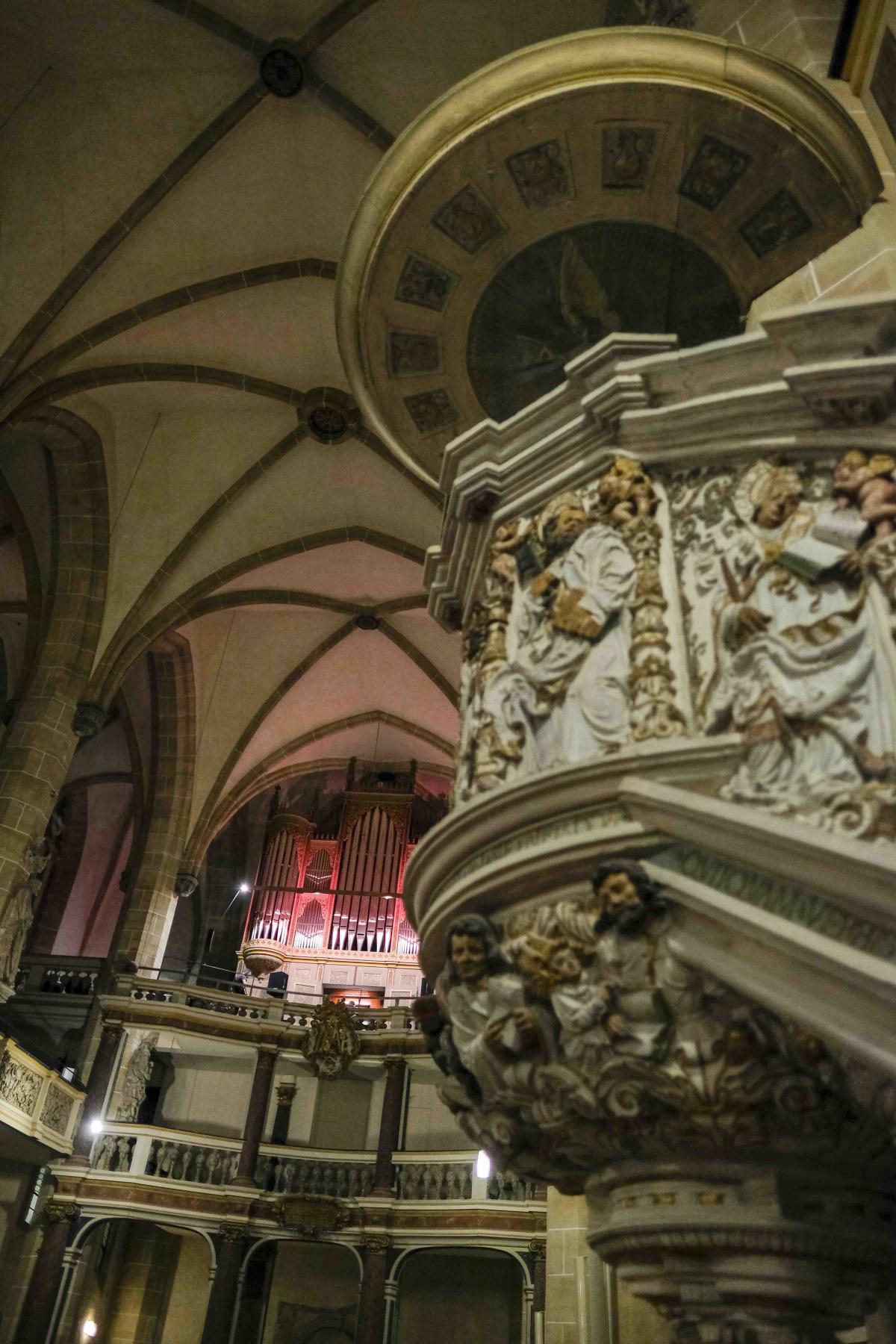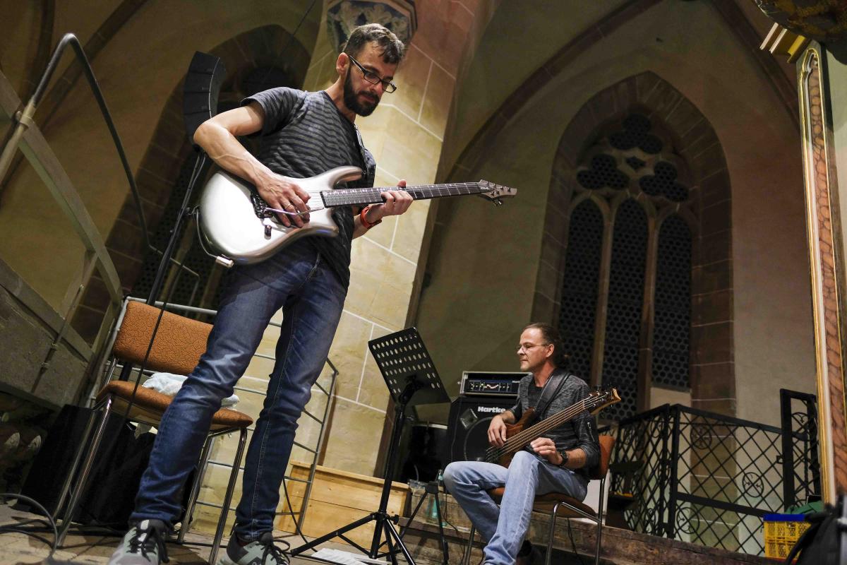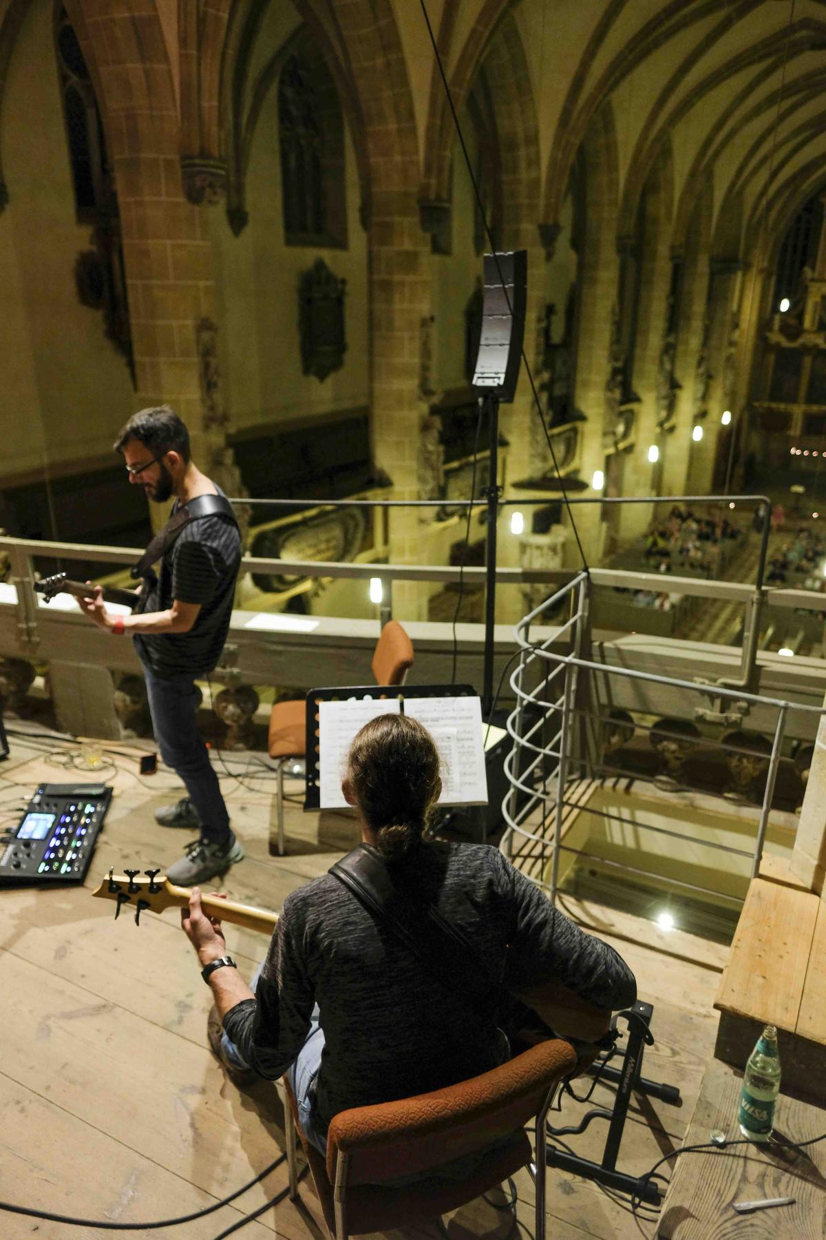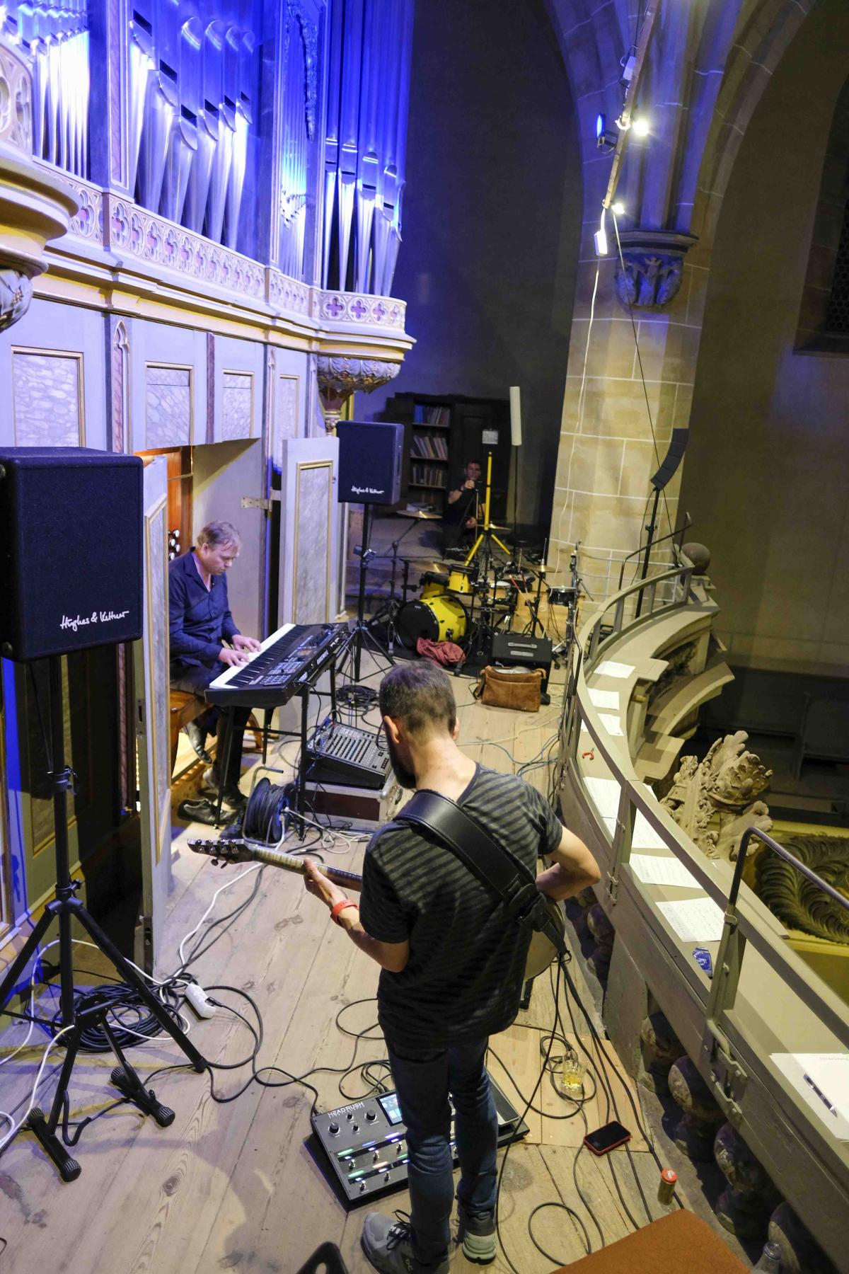 Während man um 22 Uhr auf dem Marktplatz mit dem Abbau des Pavillons begann, drehte man in der halleschen Domgemeinde noch einmal musikalisch auf. Die Vielfalt von Emotionen offebarten DruGan mit ihrer dortigen Performance. Ruhige, sphärische Klänge trafen auf kraftvolle Beats – alles live performt an Bass, E-Gitarre, Schlagzeug, Keyboard und Orgel. Anknüpfend an das Thema der diesjährigen Kirchennacht - „Macht der Emotionen“ – gelang es dem Quartett die Vielgestaltigkeit menschlicher Gefühlsregungen in einzigartiger Weise musikalisch abzubilden. Für den im Dom aktiven Kantor Gerhard Noetzel war es auch das Finale eines langen Abends. Vor seinem Auftritt mit DruGan war er in der halleschen Marktkirche gefragt. Aufgrund des gesundheitlichen Ausfalls von KMD Irénée Peyrot (Red.: dem wir von hieraus beste Genesungswünsche zukommen lassen) improvisierte Noetzel zu Beginn der Kirchennacht zu Psalmen, die von Pfarrerin Simone Carstens-Kant und Superintendent Hans-Jürgen Kant gelesen wurden.
