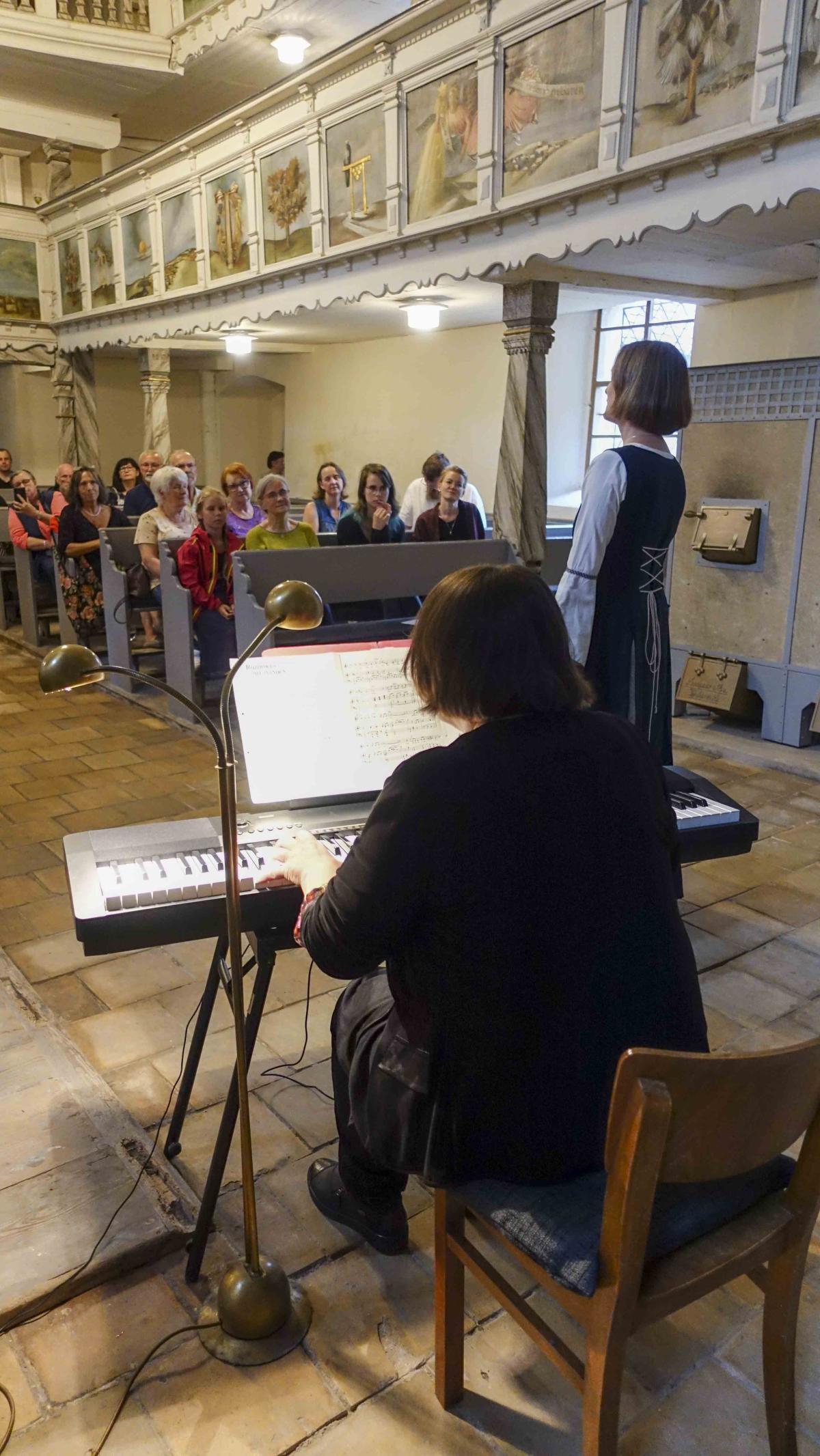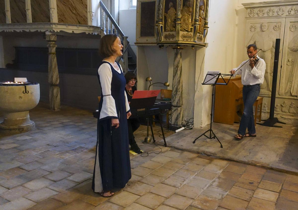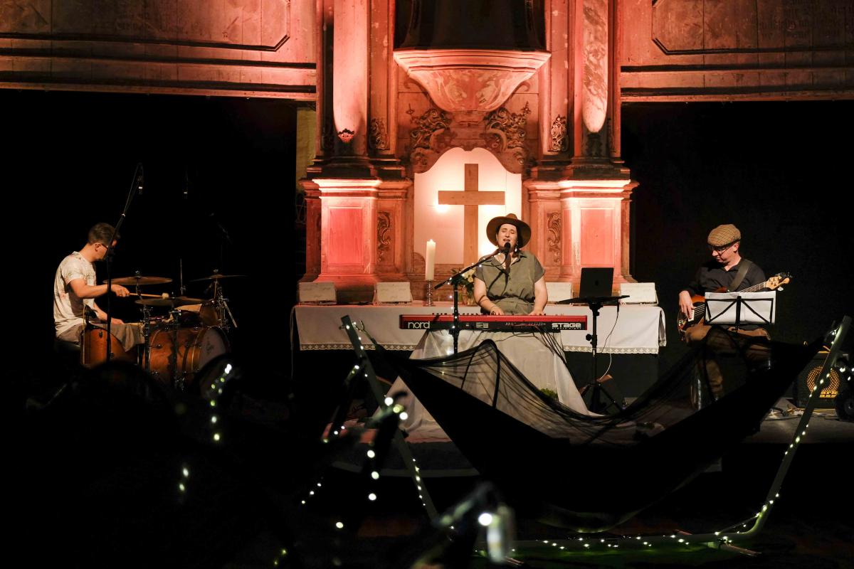 Mehr als 100 Programmpunkte stellten Besucherinnen und Besucher vor die Qual der Wahl. So gab es zum Beispiel bereits zu Beginn der 22. Kirchennacht um 19 Uhr ein Konzert mit Jiddischer Musik in der Hollebener Dorfkirche. Ca. 50 Gäste verfolgten das Konzert von Anna Ullrich (Gesang), Evguenia Tcherkes (Klavier) und Bernhard Ullrich (Geige). Für die drei war es coronabedingt der erste gemeinsame der Auftritt seit 2019.