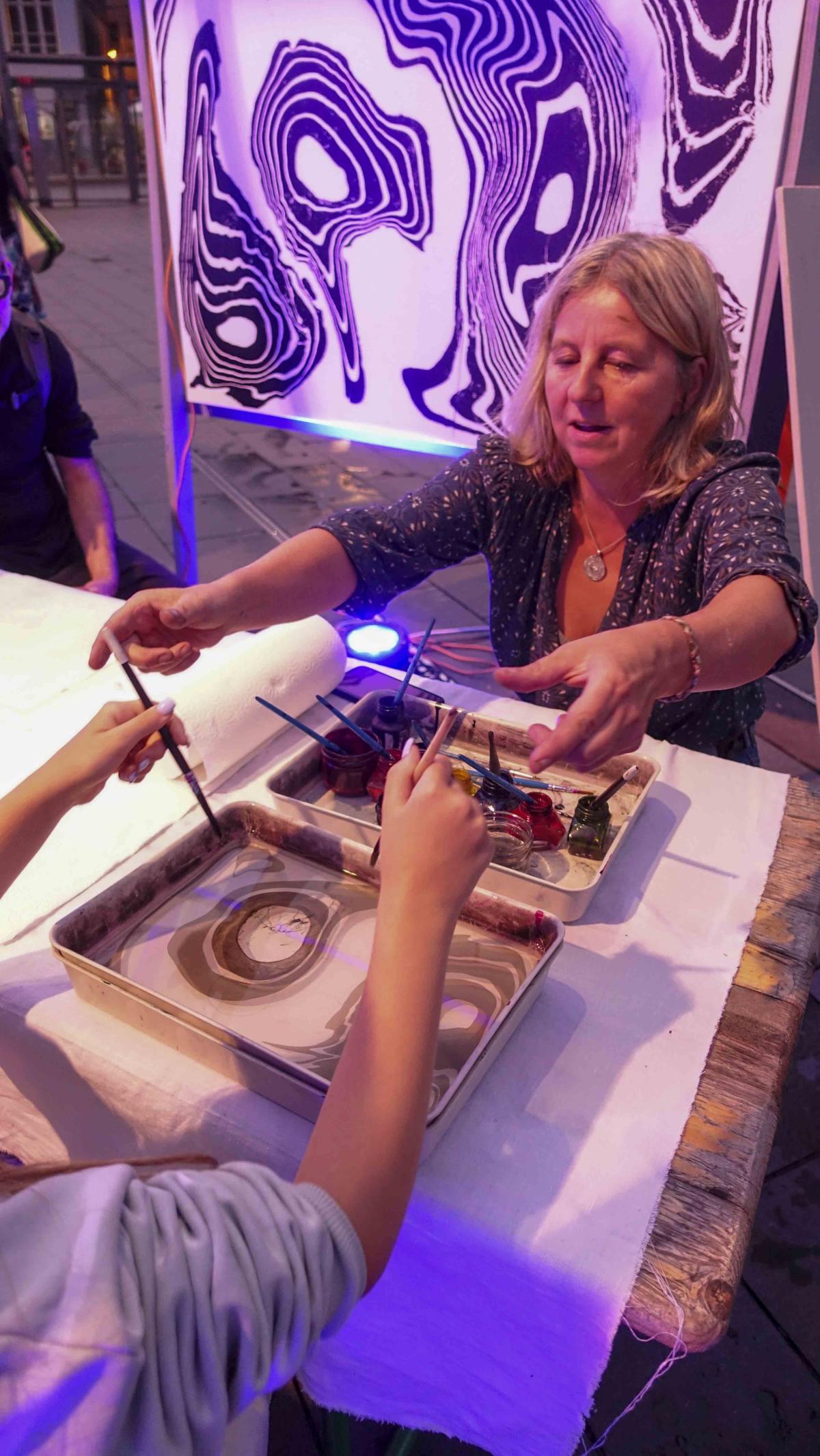 Nicht reproduzierbar waren die künstlerischen Arbeiten, die auf dem Marktplatz entstanden sind. Gemeinsam mit der Künstlerin Josefine Cyranka und dem Künstler Christian Wenzel lud Citypfarrerin Ulrike Scheller zum Sommeratelier „Das Blaue vom Himmel“ ein. Am Fuß der Marktkirche hatten Menschen die Möglichkeit ihre Perspektiven auf das Thema unter dem Dach des blau illuminierten Pavillons kreativ umzusetzen. „Alle Altersklassen und Milieus waren an unserer Aktion interessiert und haben hier mitgemacht“, resümiert Ulrike Scheller etwas überrascht und erfreut über die gute Resonanz. „Die Zeit verging wie im Flug“, ergänzt beim Blick auf die Uhr Josefine Cyranka. Mit der Aktion im öffentlichen Raum war die Citykirche einer von drei Debütanten bei der diesjährigen NDK.