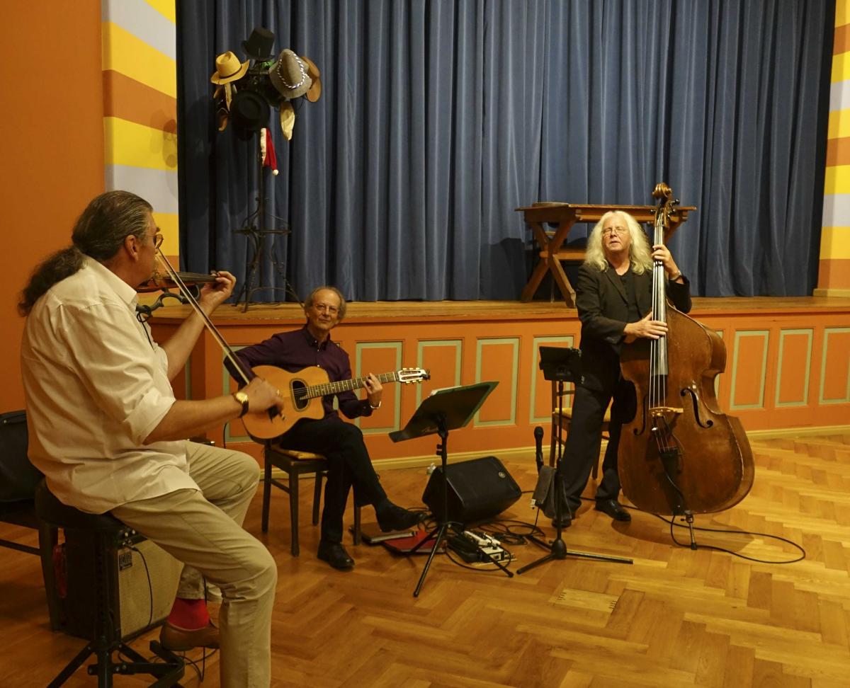 Keine Gelegenheit zu Schlaf gab es in der halleschen Johannesgemeinde. Hier erfuhren sie in Anlehnung der Entstehungszeit des frisch renovierten Gemeindesaals die 20er Jahre des zurückliegenden Jahrhunderts eine Renaissance. Im Zentrum der Reminiszenz stand die Musik der hallesch-weimarer Band „Hot Strings“. Mit Geige, Gitarre und Bass ließen sie den Jazz und Swing der damaligen Zeit wieder lebendig werden. Theatrale Aufführungen und Tanzeinlagen zwischen den Stücken komplettierten das einstündige Programm, das im Laufe des Abends noch zwei Mal wiederholt wurde.