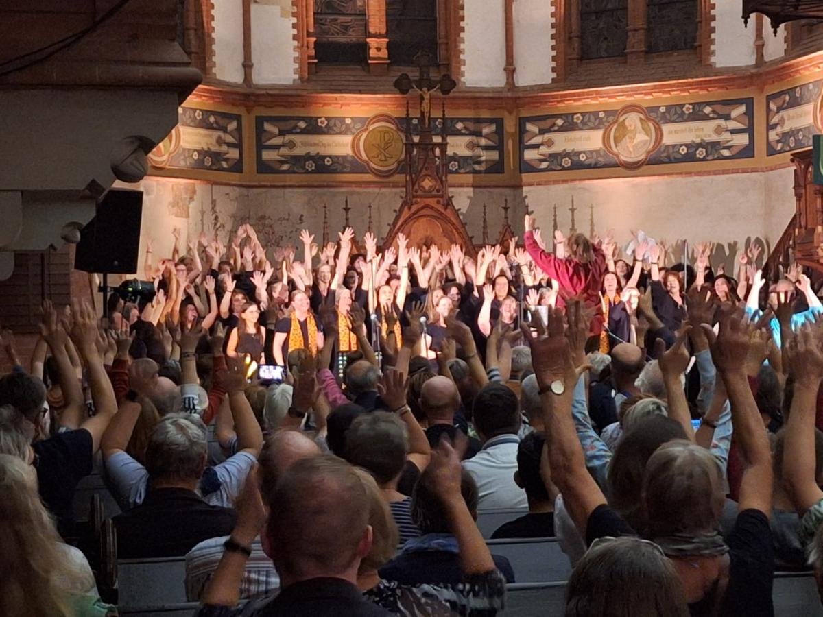 Danke an alle, die mitgemacht haben : Sängerinnen und Sänger und die jeweiligen Chorleiter, Thomas und Oliver als Workshopleiter, die Band, Techniker, die Johannesgemeinde mit der Organisation,dem Kirchenkreis Halle, der das Projekt finanziell unterstützt hat und an alle, die kamen, hörten, mitsangen und spendeten.