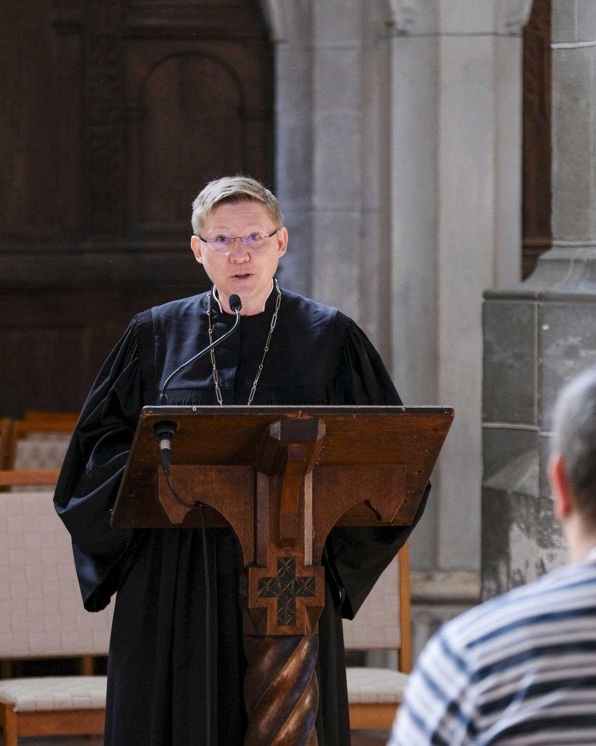 Was vor einem halben Jahr in der Passendorfer Kirche seinen Anfang nahm, fand am heutigen Israelsonntag in der Marktkirche in Halle seinen vorläufigen Abschluss: die Visitation des Kirchenkreises Halle-Saalkreis. Im Rahmen eines Gottesdienstes, der von Regionalbischöfin Bettina Schlauraff (Foto) geleitet wurde, bot sich der Gemeinde noch einmal die Gelegenheit, gemeinsam im Gebet und in Dankbarkeit auf das Vergangene zurückzublicken.