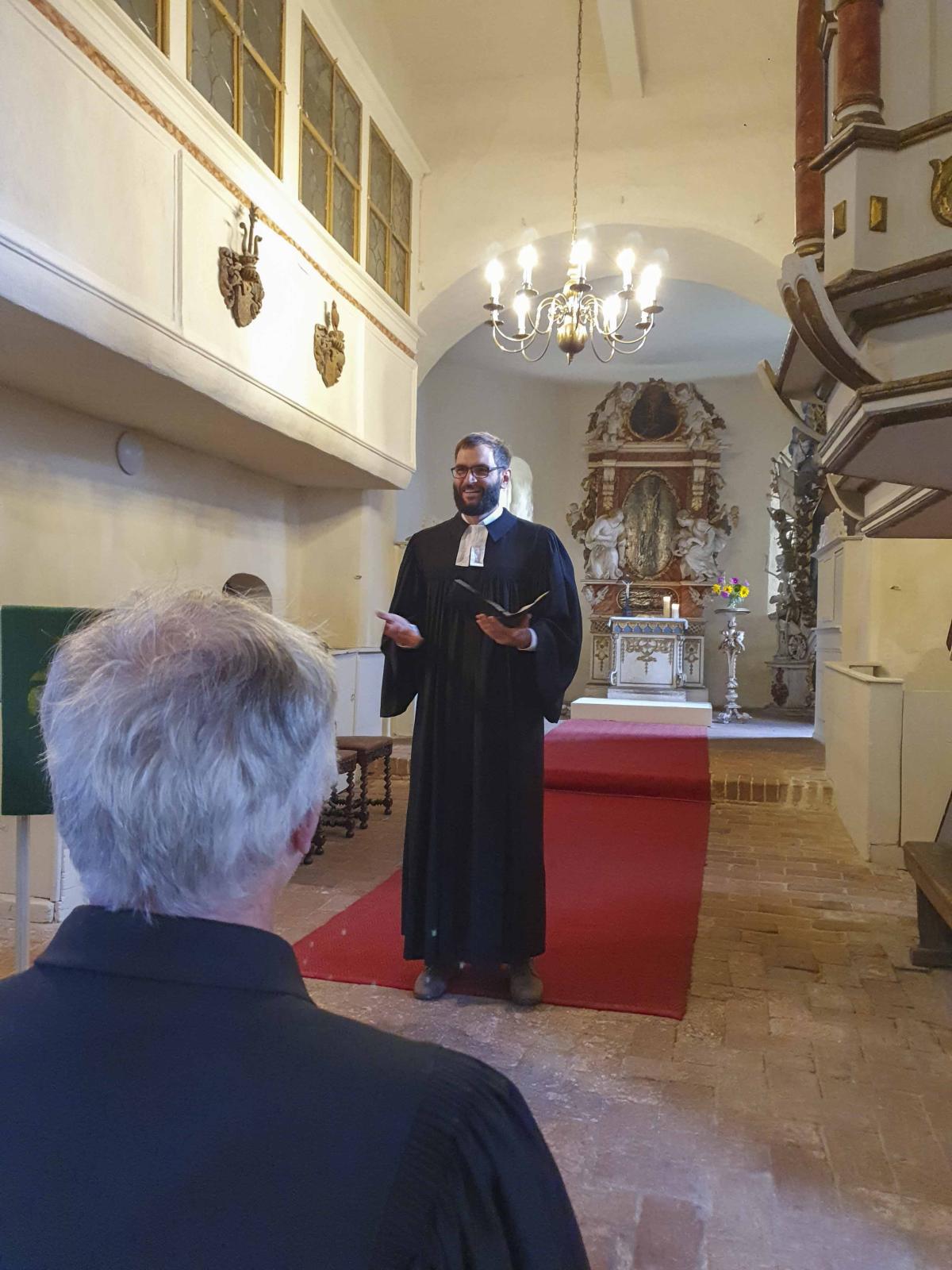Heute wurde in Bennstedt Jakob Haferland als neuer Pfarrer i.E. begrüßt. Sein Dienstbeginn markiert das Ende einer zweimonatigen Vakanzzeit im Teutschenthaler Pfarrebreich. Für den gebürtigen Zittauer beginnt jetzt eine dreijährige Entsendungszeit. In seiner ersten Predigt nach seiner Begrüßung durch Superintendent Hans-Jürgen Kant knüpfte Jakob Haferland an den aktuellen Wochenspruch "Lobe den HERRN, meine Seele, und vergiss nicht, was er dir Gutes getan hat." (Ps 103,2) an.