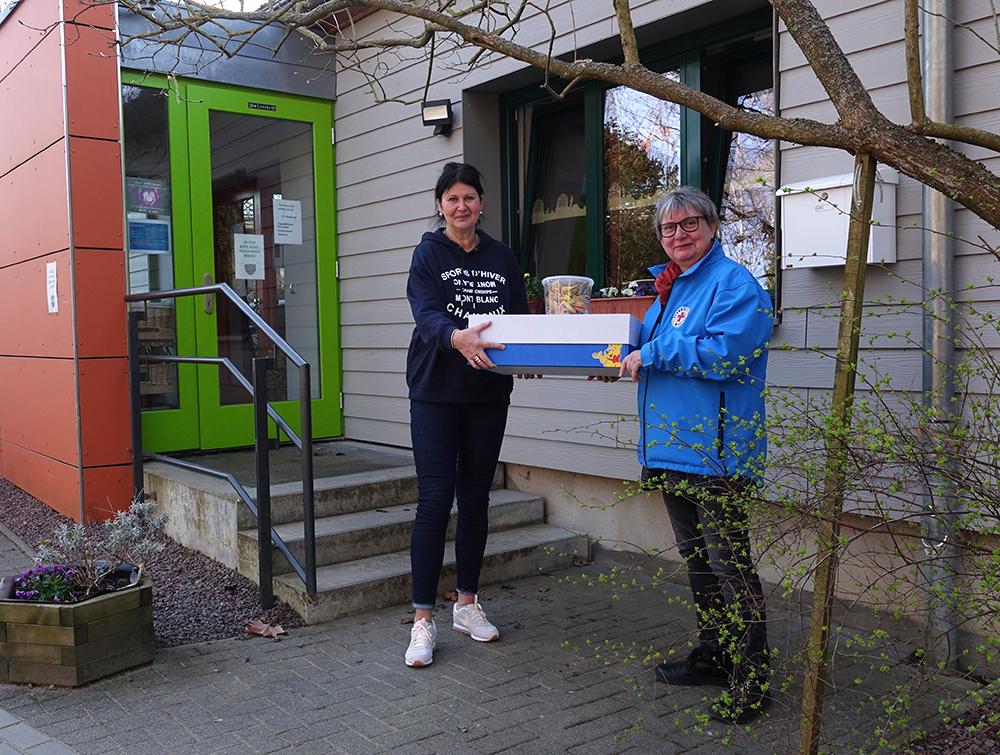 Im Auftrag der KiTas des Zweckverbandes familienunterstützender Einrichtungen im Kirchenkreis Halle-Saalkreis übergab heute Kerstin Jugelt, Leiterin der KiTa St. Georgen, mehrere Süßigkeiten an die hallesche Bahnhofsmission. Diese werden von freiwilligen Helferinnen und Helfern an der zentralen Aufnahmestelle in Halle-Neustadt verteilt.