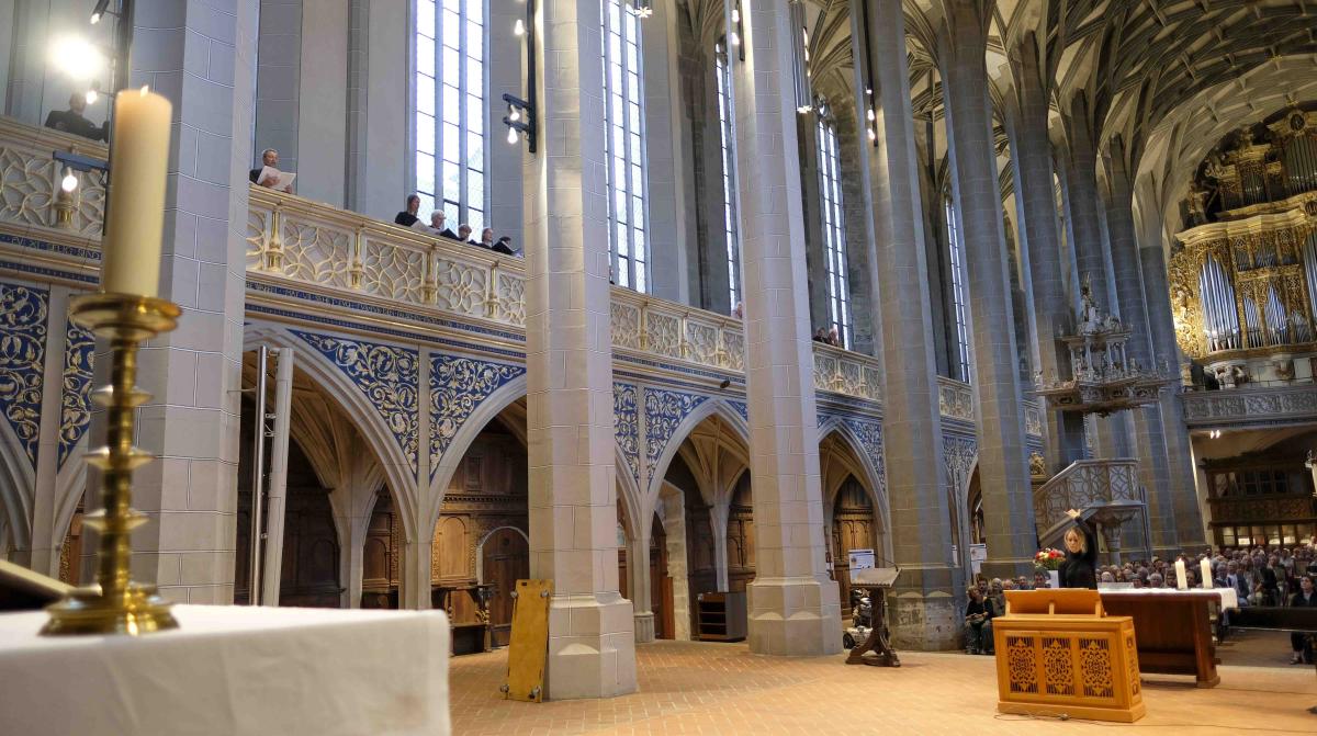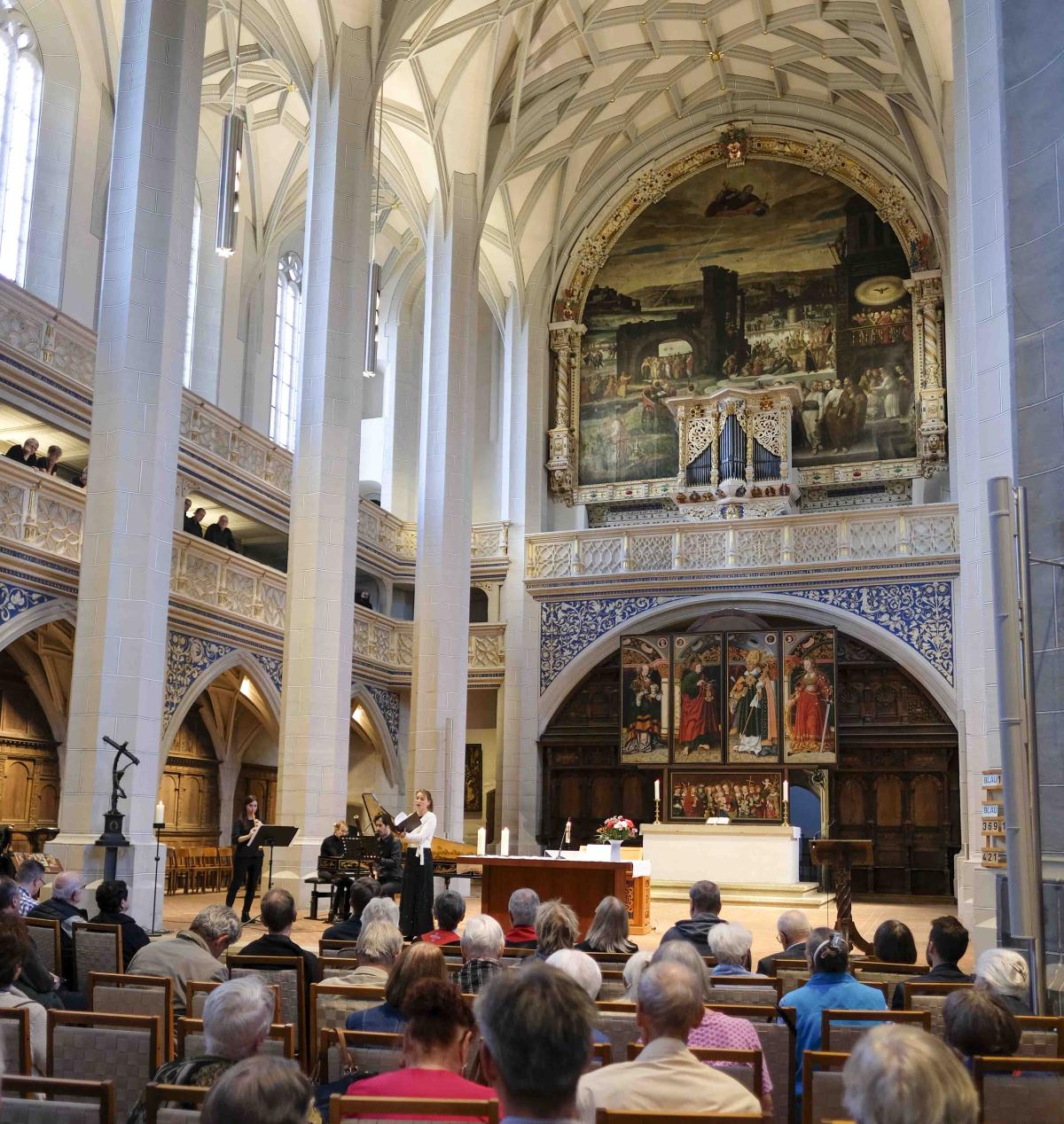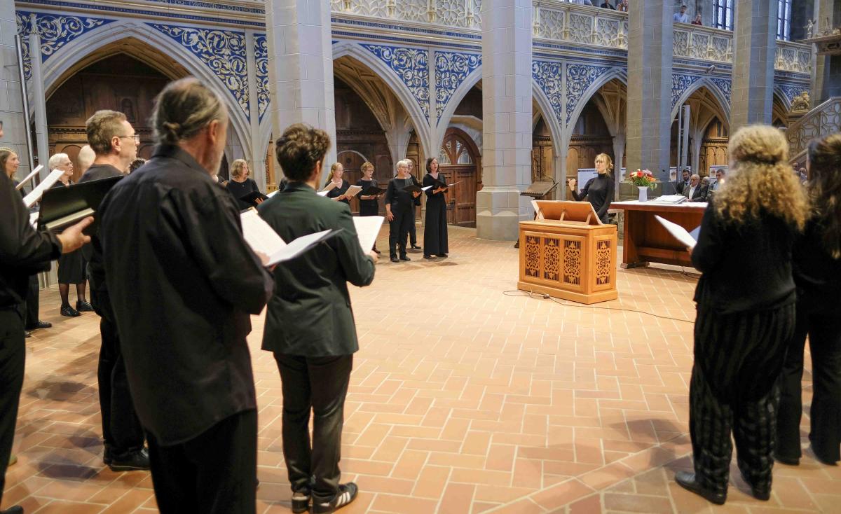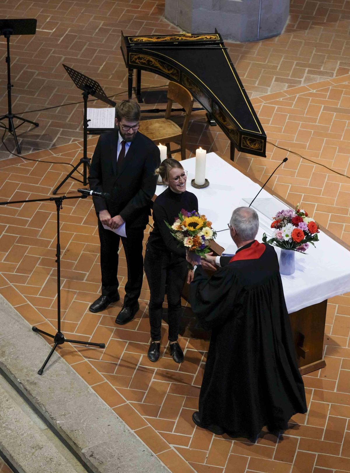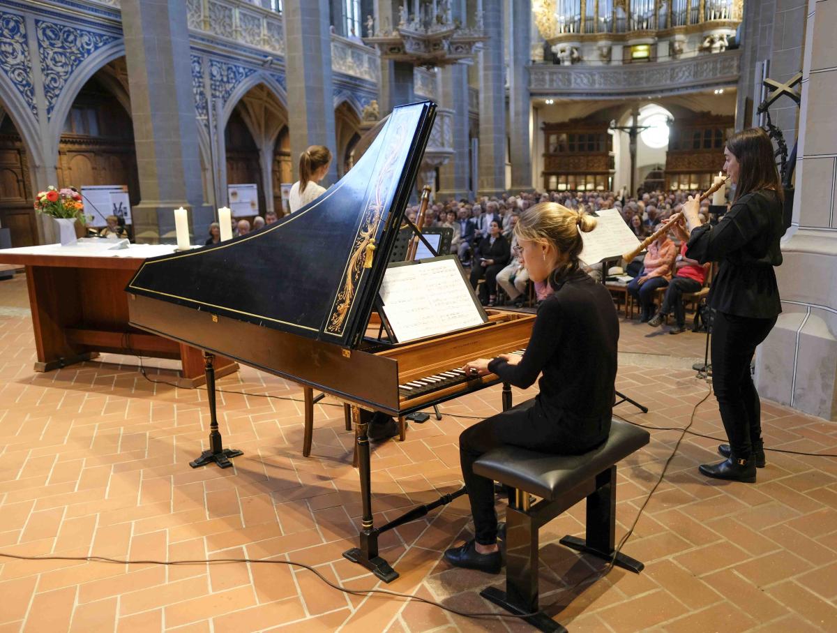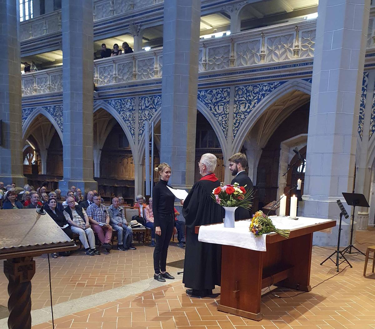 Mit einem musikalisch fulminanten Gottesdienst wurde am gestrigen Sonntagnachmittag Anna Scholl in ihre Stelle als Marktkirchenkantorin eingeführt. Ob Orgelspiel, am Cembalo oder die Kantorei dirigierend: in der 90minütigen Feier präsentierte die A-Kirchenmusikerin die Vielfalt ihres musikalischen Könnens.