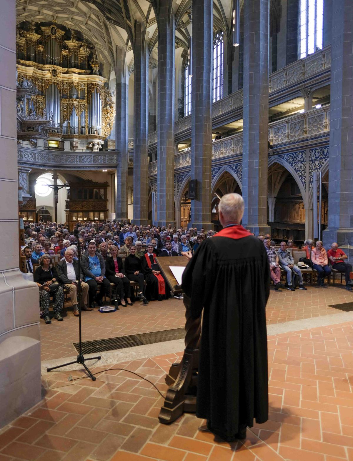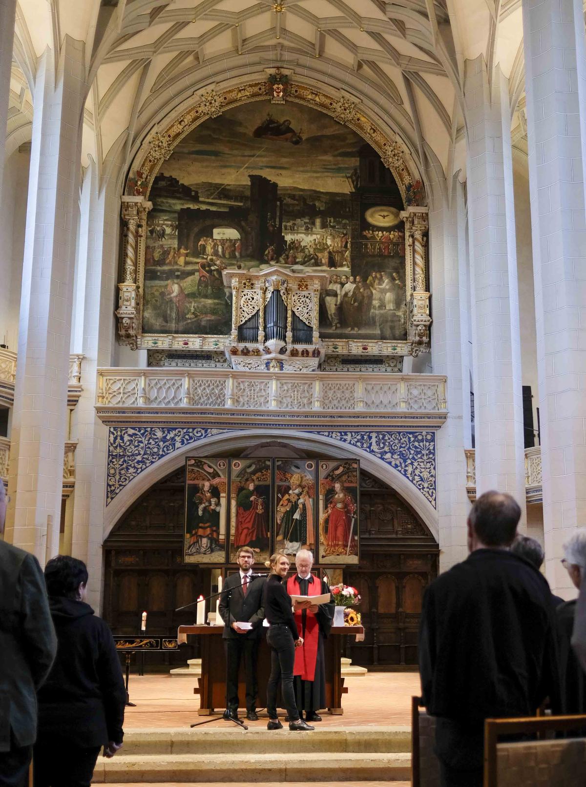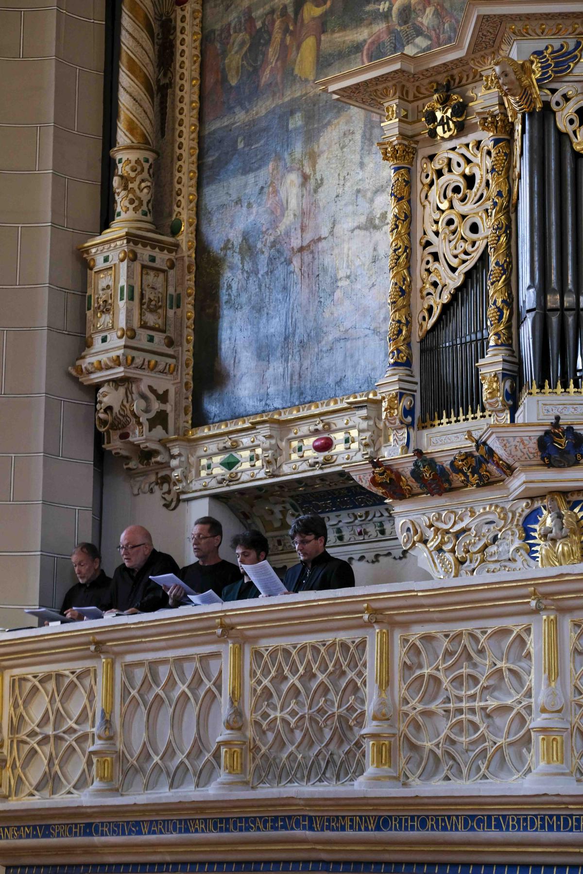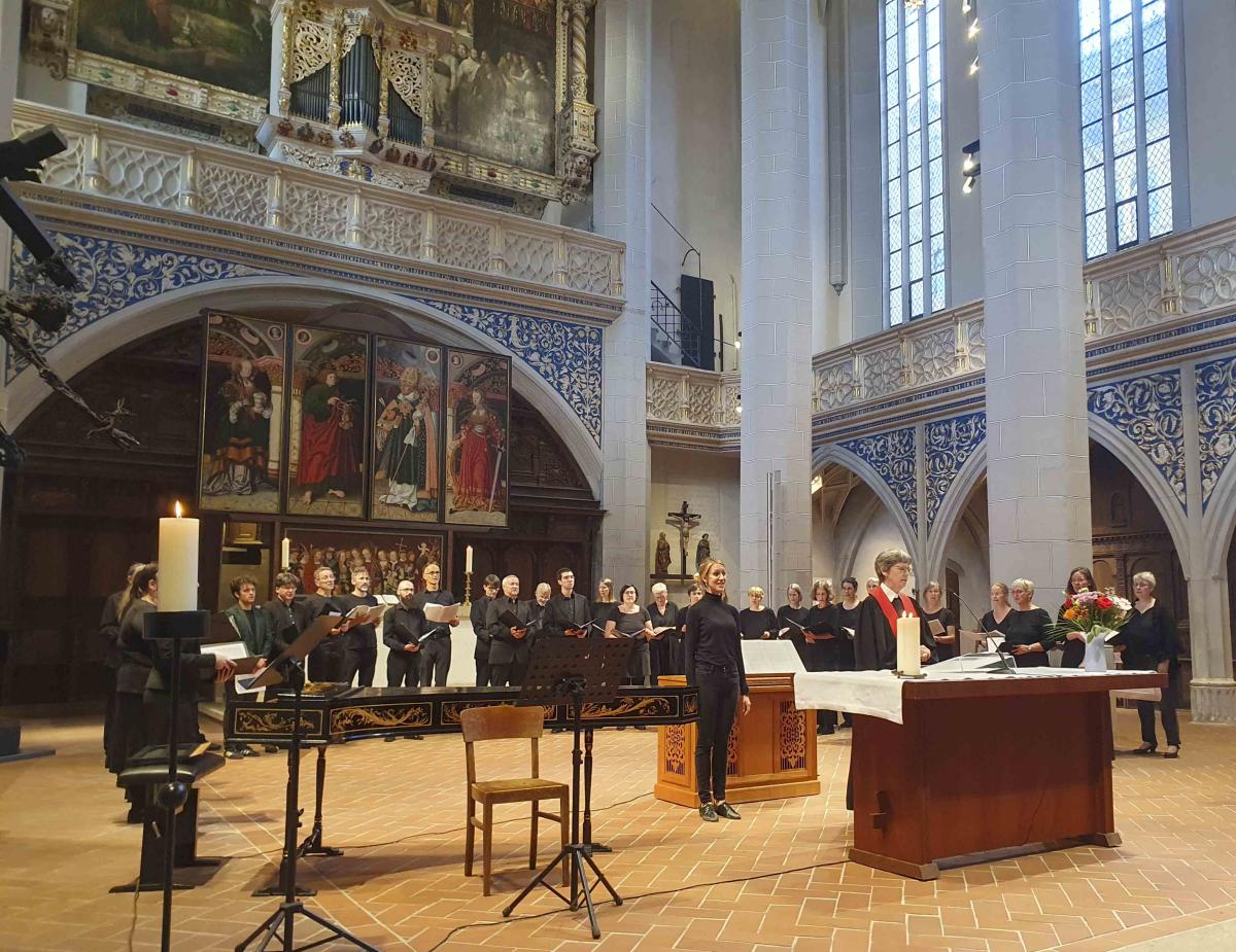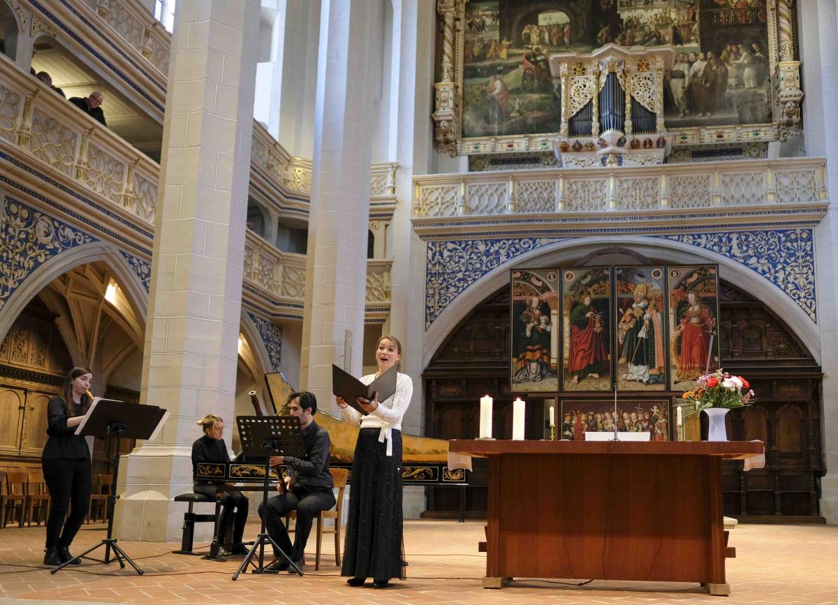 Mit einem musikalisch fulminanten Gottesdienst wurde am gestrigen Sonntagnachmittag Anna Scholl in ihre Stelle als Marktkirchenkantorin eingeführt. Ob Orgelspiel, am Cembalo oder die Kantorei dirigierend: in der 90minütigen Feier präsentierte die A-Kirchenmusikerin die Vielfalt ihres musikalischen Könnens.