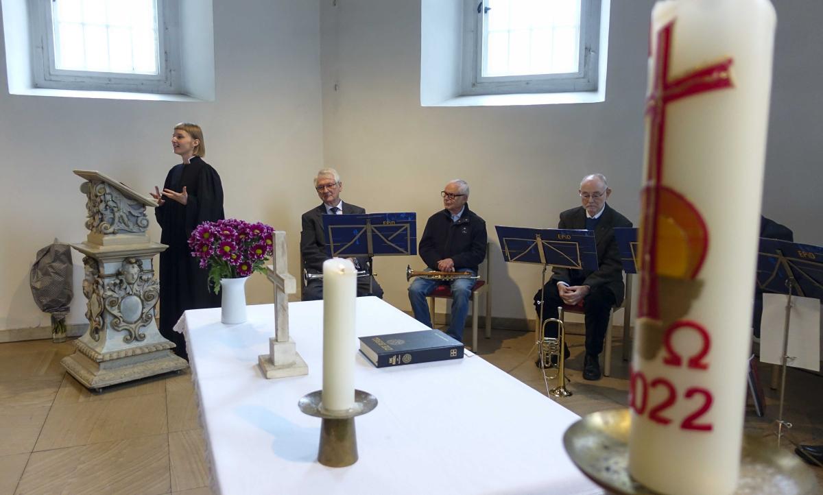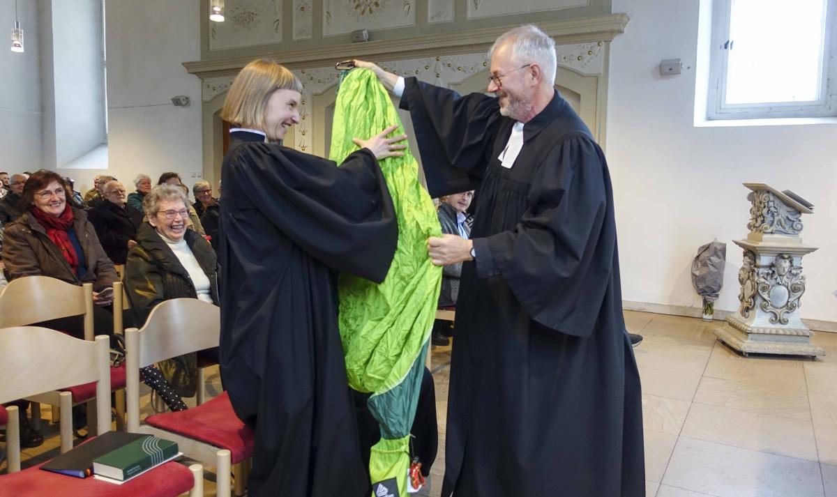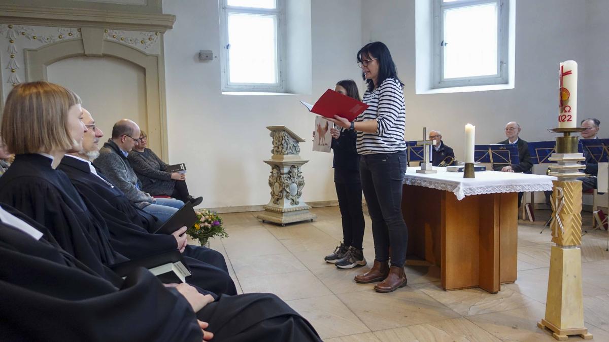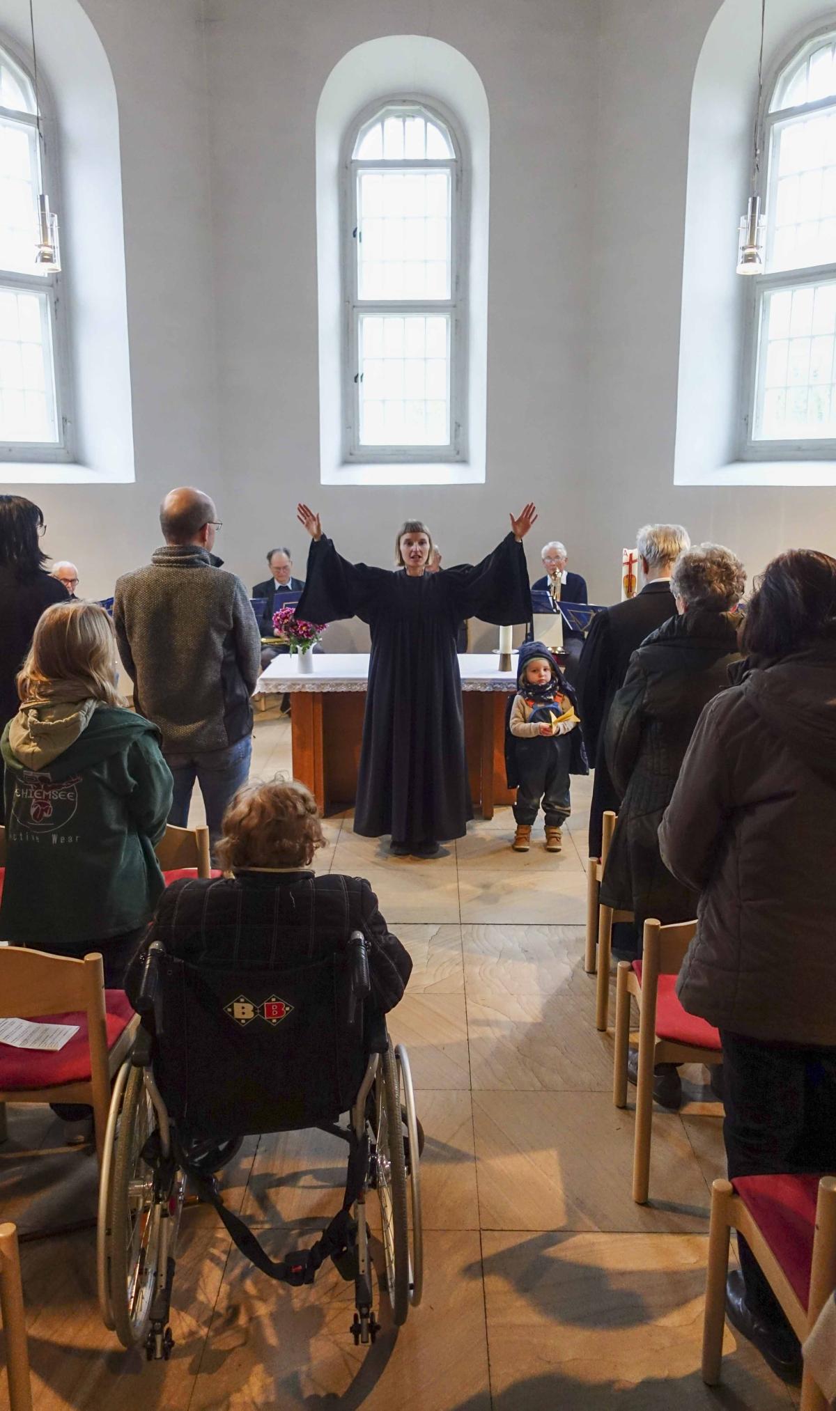 Der wohl emotionalste Moment ihrer Predigt war der kurze Rückblick auf die jüngste Geschichte der Gemeinde. Zur Erinnerung: Im vergangenen Jahr verstarb die langjährige Gemeindepfarrerin Regina Weihe unerwartet. Darauf folgte eine sechsmonatige Vakanzzeit mit Pfarrer i.R. Martin Herzfeld. Hanna Henke räumte ein, dass ihre „Neubesetzung nie ein Ersatz“ für die beiden prägenden Personen sein kann und will. Vielmehr will sie entsprechend ihrer Gaben das Neue in den Blick nehmen, ohne den wertschätzenden Blick auf das Zurückliegende zu vergessen.