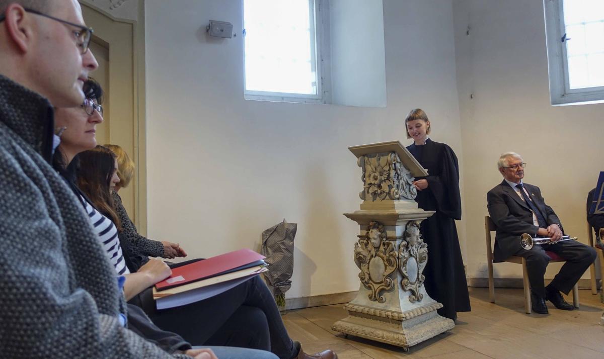 Bis auf die Stufen zur Orgelempore war die Passendorfer Kirche in Halle-Neustadt gefüllt. Natürlich war das dem besonderen Anlass geschuldet. Nicht nur die Treppe zur Orgel sondern auch einige der Stühle werden in den kommenden Wochen wieder unbesetzt bleiben. In ihrer Predigt blickte die Pfarrerin auf eben diese Stühle. Für sie sind unbesetzten Plätze mehr als nur ein Anlass zur Erinnerung an die Fülle vergangener Zeiten. Jeder freie Stuhl ist ein Raum, der noch besetzt werden will, „eine Einladung zu einer neuen Begegnung“, blickt Hanna Henke optimistisch in die Zukunft. Es ist ein Platz für Menschen, die auf der Suche sind nach Sinn, Zuspruch und Befreiung. Und als Kirche haben wir – so die Seelsorgerin weiter - „die gute Nachricht im Gepäck, die Trost spendet und befreit.“ Kirche steht nach den Überlegungen der Pfarrerin vor der Herausforderung, die Botschaft so zu erzählen, dass diese auch gehört wird. Mit ihren Vikarsprojekten „Wohnzimmerkirche“ oder der „Fuckup-Night“ hat Hanna Henke bereits in der Vergangenheit gezeigt, was sie damit meint, wenn sie davon spricht vertraute Wege auch mal zu verlassen.