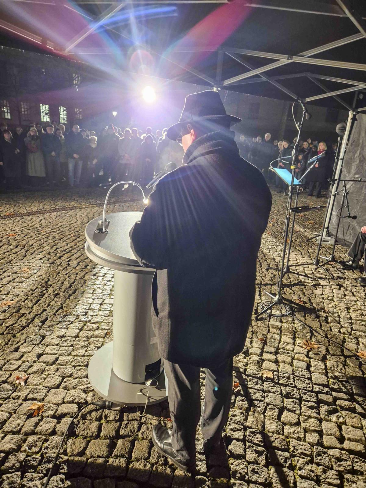 Dies aufgreifend schlug der amtierende Superintendent, Pfarrer Karsten Müller, den Bogen in die Jetzt-Zeit, in welcher der ehemals laute Ruf des „Nie wieder!“ hörbar schwächer wird. „Es beginnt mit Ausgrenzung und endet mit Auslöschung“, sagte der Theologe bevor sich der Trauerzug in Richtung Mahnmal am Jerusalemr Platz auf den weg machte.