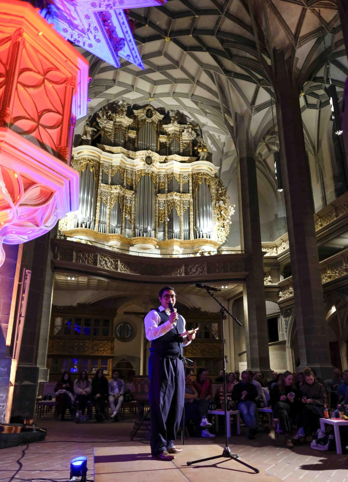 Auch einige unserer Kirchengemeinden sowie der Kirchenkreis selbst beteiligten sich mit Gesprächs-, Konzert- und Literaturformaten. Der Poetry-Slam in der halleschen Marktkirche markierte dabei einen der Höhepunkte des Festival-Wochenendes. Bei „LeseZeichen - Best of Poetry Slam“ wechselten sich junge Literaten und erfahrene Poeten vor den ca. 150 Gästen auf der Bühne ab.