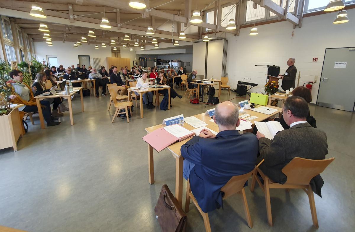Anschließend führte Superintendent Hans-Jürgen Kant in das Thema ein. Darin unterstrich der Vorsitzende des Kreiskirchenrates, die unabdingbare Notwendigkeit des Handelns, als Ergebnis des fortwährenden Rückgangs der Gemeindegliederzahlen. „Jedes Jahr verliert der Kirchenkreis 800-1.000 Personen.“ Der Stellenplan so Kant weiter, sei eine Reaktion darauf. Die Planungen gehen davon aus, dass im Jahr 2035 statt aktuell 25.800 nur noch ca. 18.600 Gemeindeglieder im Kirchenkreis beheimatet sein werden. Die daraus reduzierte Mittelzuweisung macht es notwendig in Summe 4,25 Stellen einzusparen. Das wird, wie die eingebrachte Vorlage zum Anhörungsverfahren deutlich macht, alle inhaltlichen als auch geografischen Bereiche betreffen. „Alle Stellen sind eigentlich unaufhebbar. Und die Anhörungen werden uns noch einmal vor Auge führen, wie wichtig jede dieser Stellen ist - und trotzdem müssen wir 4,25 Stellen reduzieren“, so Kant in seiner Rede.