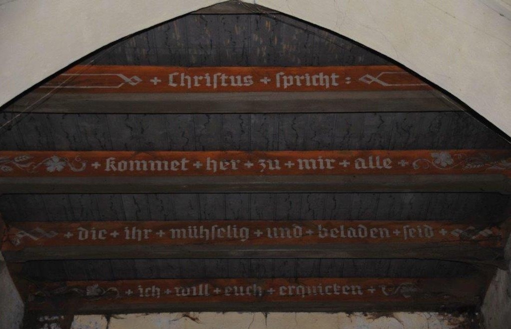1934, anlässlich des 400-jährigen Jubiläums der Bibelübersetzung Luthers in die deutsche Sprache, erhält die Kirche eine neue Innenausmalung mit Lutherrose an der Kanzel und verschiedenen Bibelworten.