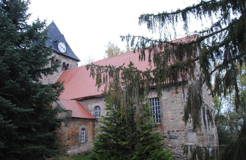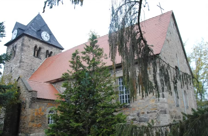 Ältestes Bauwerk im Ort ist die Kirche, welche das für Mitteldeutschland ungewöhnliche Patrozinium der Heiligen Helena trägt. Wie die meisten Kirchen im Saalekreis ist auch St.Helena als ein einschiffiger Kirchsaal mit angeschlossenem Westquerturm, welcher romanische Schallarkaden zeigt, erbaut.